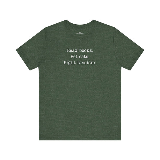 Read Books Pet Cats Fight Fascism T-Shirt | Anti-Fascist Activist Tee | Cat Lover Resistance | ACLU Donation