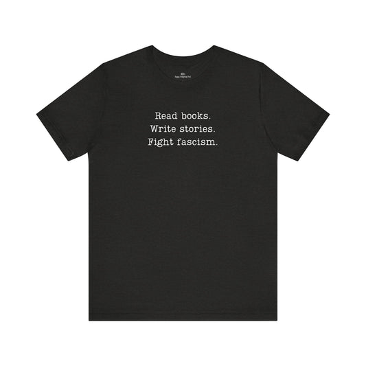 Read Books Write Stories Fight Fascism T-Shirt | Anti-Fascist Protest Tee | Literary Resistance | ACLU Donation